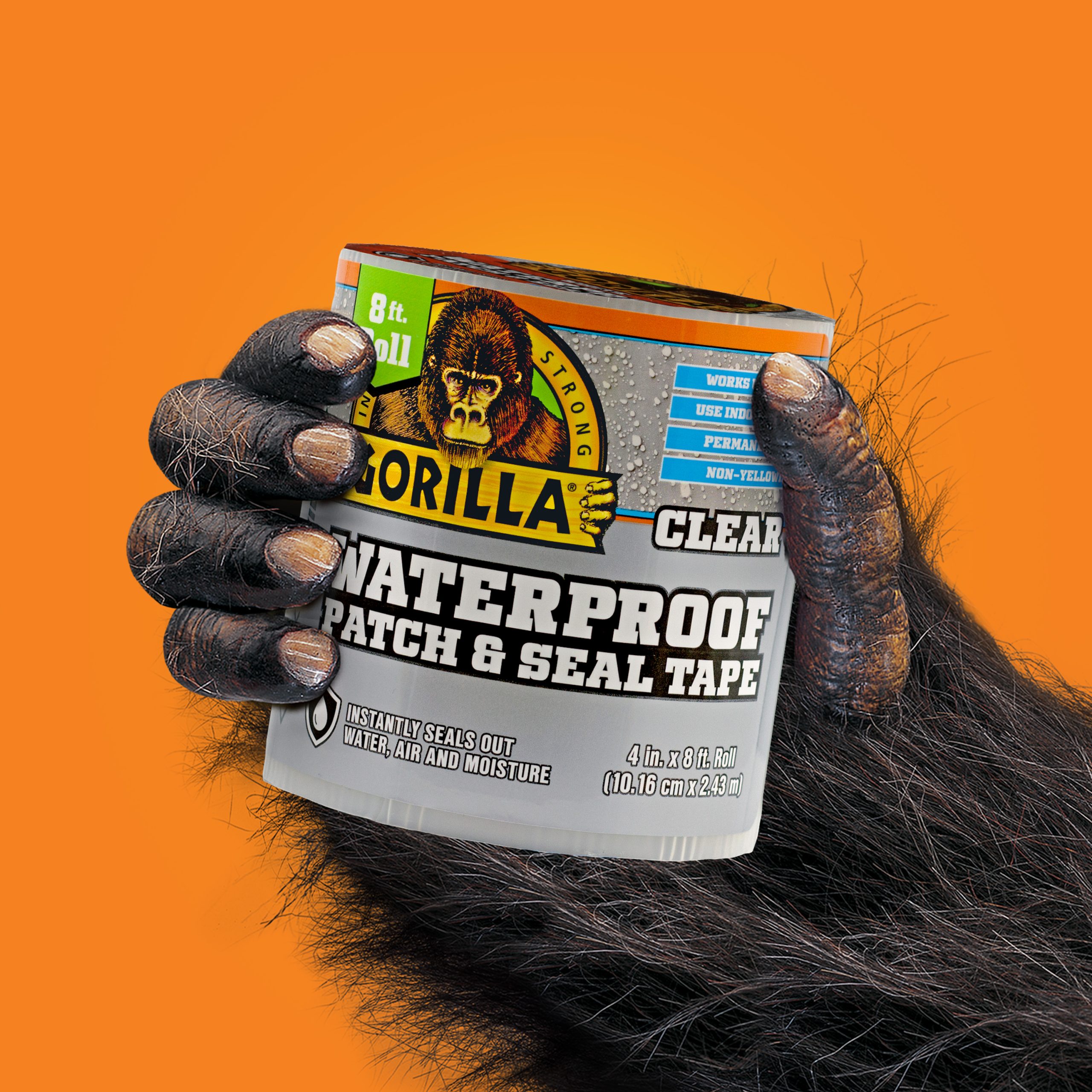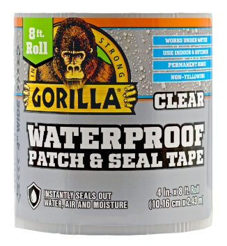 Gorilla Waterproof Patch & Seal Tape is a flexible tape which forms a permanent waterproof, airtight* barrier. This waterproof tape can patch holes, cracks, gaps and tears, with a rubberised backing which can be flexed and stretched to fit your surface. Great for: window frames, conservatories, inflatables, pond covers, caravans, trailers, gutters, drainage pipes, roofing, and more!   *Reduced if porous material